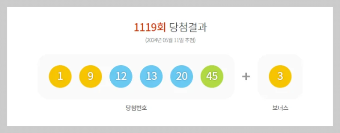 로또 1119회 당첨번호가 발표되었습니다.